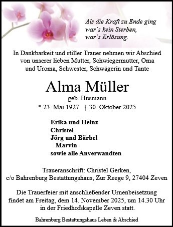 geboren am 23. Mai 1927 in Gyhum gestorben am 30. Oktober 2025 in Gnarrenburg