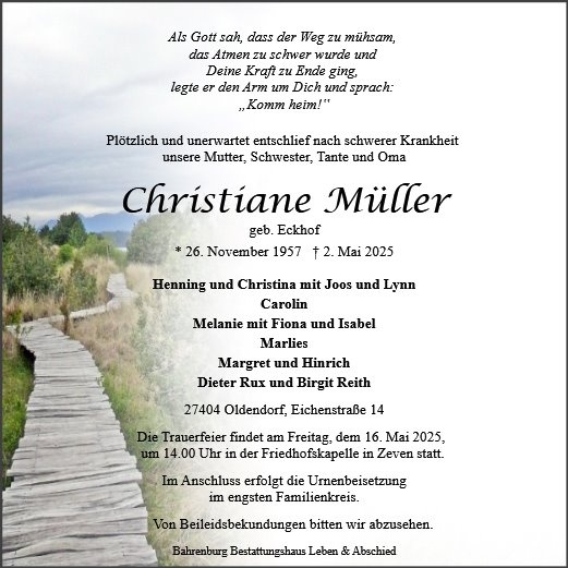 geboren am 26. November 1957 in Elsdorf gestorben am 2. Mai 2025 in Stade