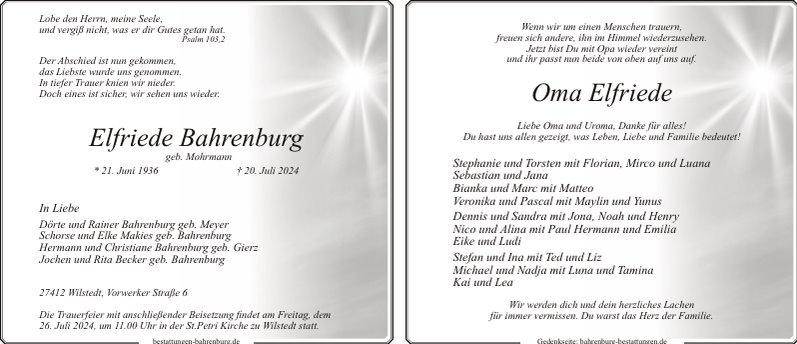Lesen Sie hier die Anzeigen und Trauerpost!