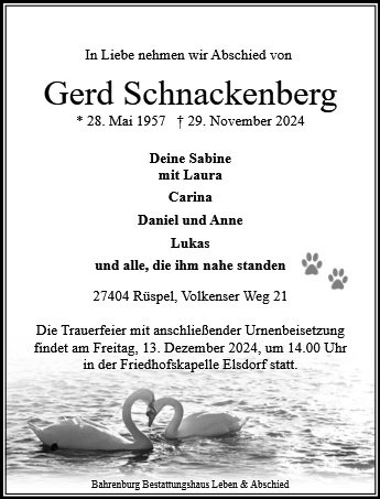 geboren am 28. Mai 1957 in Klein Meckelsen gestorben am 29. November 2024 in Rotenburg (Wümme)