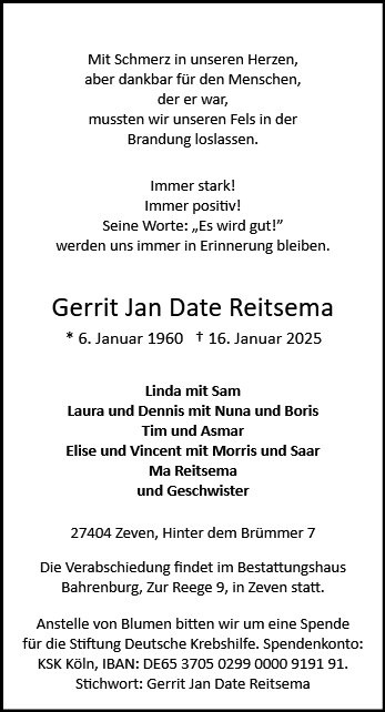 geboren am 6. Januar 1960 in s-Gravenhage gestorben am 16. Januar 2025 in Hannover