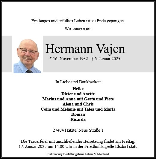 geboren am 16. November 1932 in Hatzte gestorben am 6. Januar 2025 in Rotenburg (Wümme)