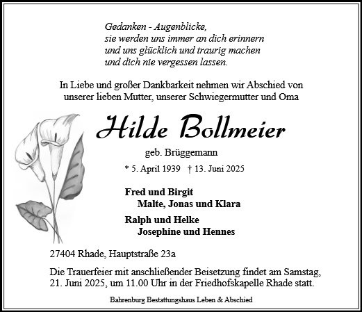 geboren am 5. April 1939 in Breddorf gestorben am 13. Juni 2025 in Lilienthal