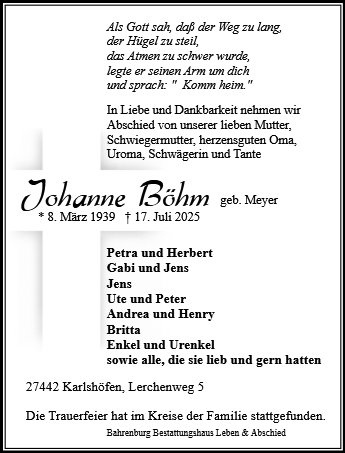 geboren am 8. März 1939 in Karlshöfenermoor gestorben am 17. Juli 2025 in Bremervörde