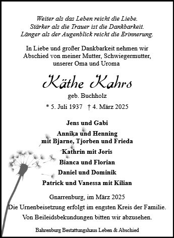 geboren am 5. Juli 1937 in Langenhausen gestorben am 4. März 2025 in Gnarrenburg