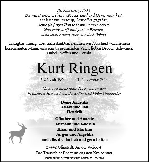 geboren am 27. Juli 1960 in Hanstedt gestorben am 3. November 2020 in Glinstedt