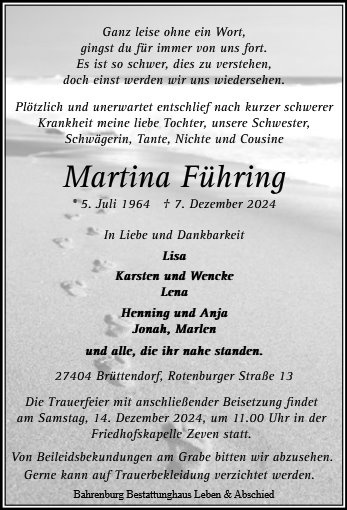 Es ist schwer bei einem solchen Anlass tröstende Worte zu finden, aber wir möchten Euch unsere herzliche Anteilnahme aussprechen und Euch viel Kraft und Zuversicht wünschen..