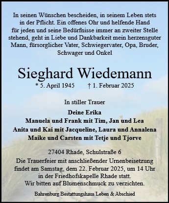 geboren am 5. April 1945 in Gummlin gestorben am 1. Februar 2025 in Bremervörde