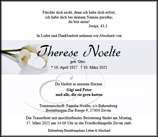 geboren am 10. April 1927 in Crossen (Oder) gestorben am 10. März 2025 in Zeven