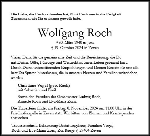geboren am 30. März 1940 in Jena gestorben am 19. Oktober 2024 in Zeven